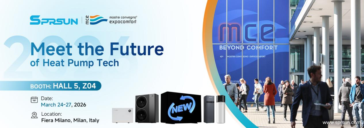SPRSUN с гордостью сообщает о своем участии в MCE 2026 – Mostra Convegno Expocomfort, главной глобальной выставке индустрии HVACR, которая проходит в Милане, Италия. С 24 по 27 марта 2026 года мы представим нашу новейшую серию воздушных тепловых насосов, призванную установить новые стандарты эффективности и производительности.